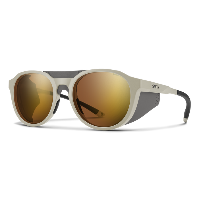 Where snow falls, you follow. On summit bids or high-speed descents, the Smith Venture sunglasses provide much-needed eye protection in alpine environments. They're our take on glacier glasses, with removable side shields that protect against light reflecting off snow, rock, and ice. ChromaPop™ lens technology offers a terrain-boosting view of every wind drift and crevasse. AutoLock hinges make for easy on and off when one of your hands is occupied with an ice axe or ski poles. And then there are the iconic round frames that look just as good glissading down a snowfield as relaxing post adventure.
